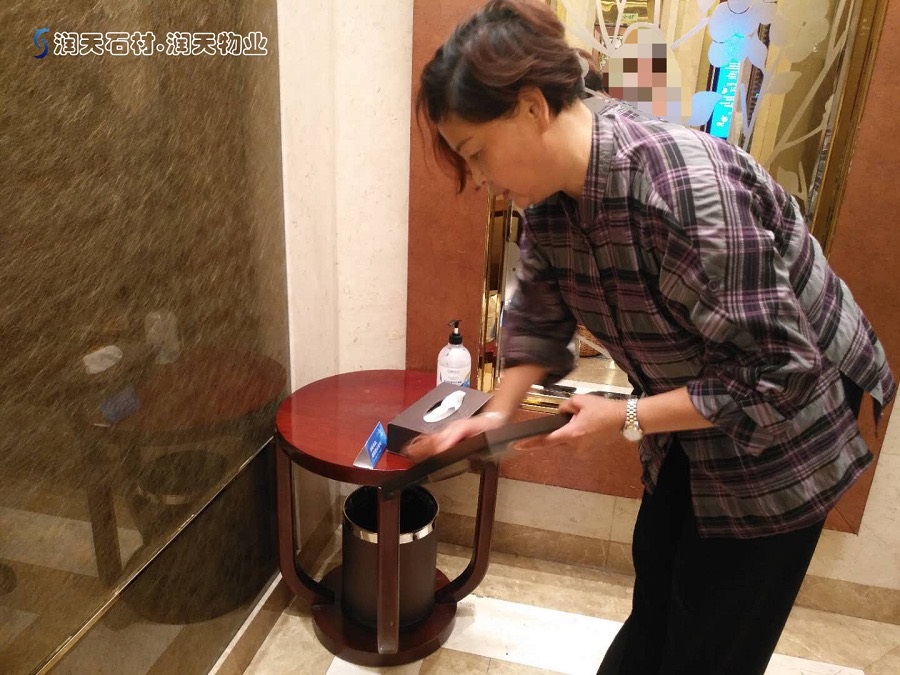 簡訊:酒店保潔員工日常工作:電梯消毒、物品擦拭消毒。-潤天物業(yè)